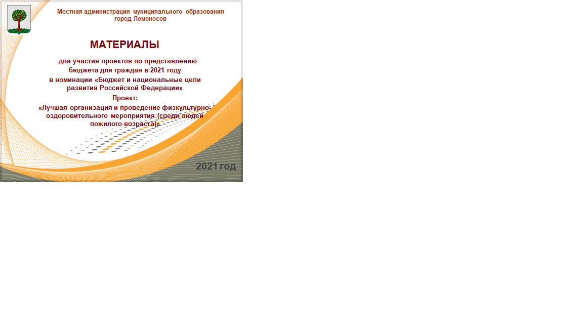Личная организация и проведение физкультурно-оздоровительного мероприятия (среди людей пожилого возраста). [ Электронный ресурс.]: 3-е место / Финансовый университет ; Местная администрация муниципального образования город Ломоносов. — Электронные данные (1 файл 89Мб). — Только электронный ресурс;. — Свободный доступ из сети Интернет (чтение, печать, копирование). — <URL:http://elib.fa.ru/STW/2021/konkurs_2021_F36.pptx>.Record create date: 10/5/2021 Subject: РФ; Россия; полный текст; электронные публикации; бюджет; бюджетные расходы; бюджетные средства; бюджетирование; проекты; конкурсы; Представление бюджета для граждан; 2021 г.; местный бюджет; региональный бюджет; бюджетная система; интерактивные методы; муниципальная система; гражданские инициативы Allowed Actions: Download (87 Mb) Group: Anonymous Network: Internet |