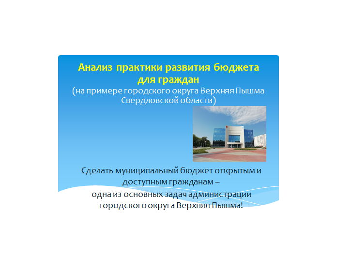 Кислова, Т.Н. Анализ практики развития бюджета для граждан (на примере городского округа Верхняя Пышма) [ Электронный ресурс.]: 3е место / Финансовый университет. — Электронные данные (1 файл 7Мб). — Только электронный ресурс;. — Свободный доступ из сети Интернет (чтение, печать, копирование). — <URL:http://elib.fa.ru/STW/2022/konkurs_2022_606.pptx>.Дата создания записи: 21.10.2022 Тематика: РФ; Россия; полный текст; электронные публикации; бюджет; бюджетные расходы; бюджетные средства; бюджетирование; проекты; конкурсы; Представление бюджета для граждан; 2022 г.; местный бюджет; региональный бюджет; бюджетная система; интерактивные методы; муниципальная система; гражданские инициативы Разрешенные действия: Загрузить (6,8 Мб) Группа: Анонимные пользователи Сеть: Интернет |