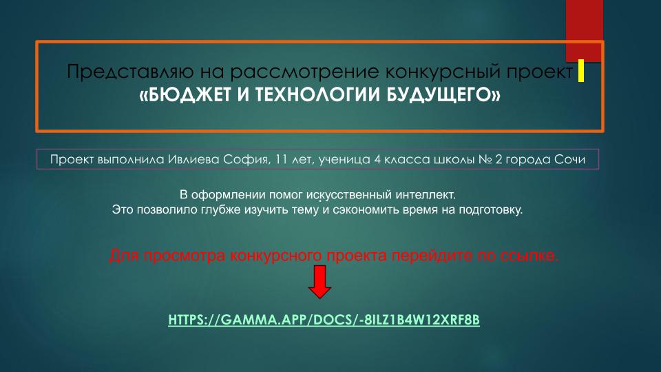 Ивлиева, София. Бюджет и технологии будущего.: Диплом 1 степени / София Ивлиева. — Электронные данные (1 файл 2,6Мб). — Только электронный ресурс;. — Свободный доступ из сети Интернет (чтение, печать, копирование). — <URL:http://elib.fa.ru/STW/2025/Ivlieva.pdf>.Record create date: 10/1/2025 Subject: РФ; Россия; полный текст; электронные публикации; бюджет; бюджетные расходы; бюджетные средства; бюджетирование; проекты; конкурсы; Представление бюджета для граждан; местный бюджет; региональный бюджет; бюджетная система; интерактивные методы; муниципальная система; гражданские инициативы Allowed Actions: Read Download (219 Kb) Group: Anonymous Network: Internet |