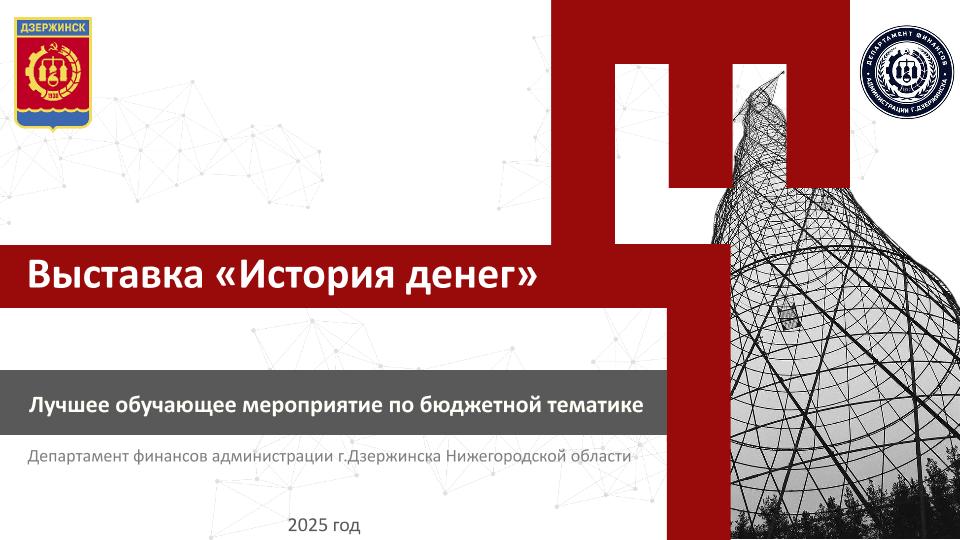 Выставка "История денег": Диплом 3 степени / Департамент финансов администрации г.Дзержинска Нижегородской области. — Электронные данные (файл 4МБ). — Только электронный ресурс;. — Свободный доступ из сети Интернет (чтение, печать, копирование). — <URL:http://elib.fa.ru/STW/2025/Dzer.pdf>.