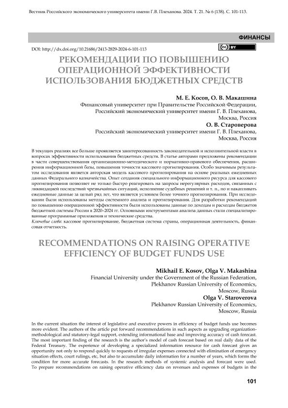 Косов, М.Е. Рекомендации по повышению операционной эффективности использования бюджетных средств / М.Е. Косов, О.В. Макашина, О.В. Староверова // Вестник Российского экономического университета имени Г.В. Плеханова. – 2024. – № 6. — С. 101-113. — Только в электронном виде. — <URL:http://elib.fa.ru/art2024/bv3353.pdf>.