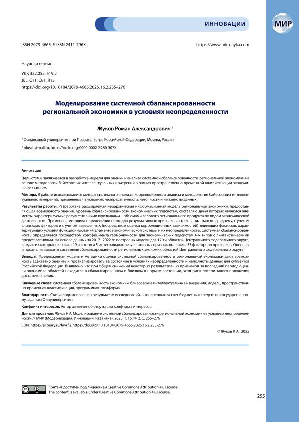 Жуков, Р.А. Моделирование системной сбалансированности региональной экономики в условиях неопределенности // МИР (Модернизация. Инновации. Развитие). – 2025. – № 2. — С. 255-276. — Только в электронном виде. — <URL:http://elib.fa.ru/art2025/bv2177.pdf>.