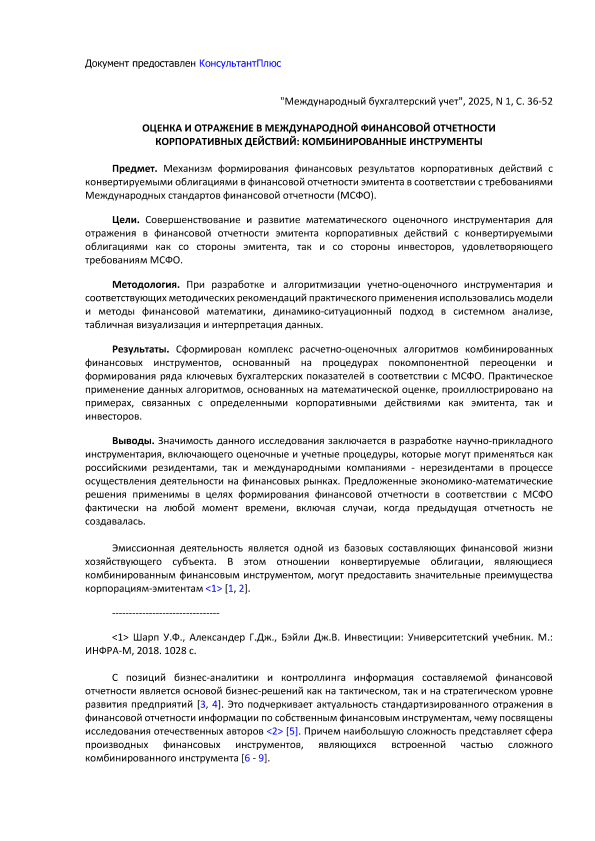 Кузьмин, А.Ю. Оценка и отражение в международной финансовой отчетности корпоративных действий: комбинированные инструменты // Международный бухгалтерский учет. – 2025. – № 1. — С. 36-52. — Только в электронном виде. — <URL:http://elib.fa.ru/art2025/bv2179.pdf>.