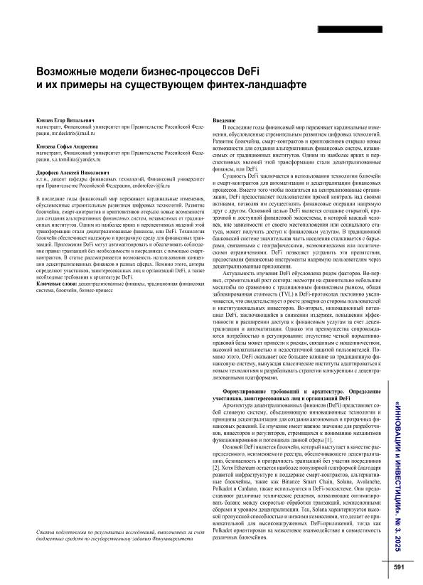 Князев, Е.В. Возможные модели бизнес-процессов DeFi