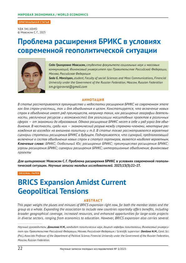 Мовсисян, С.Г. Проблема расширения БРИКС в условиях