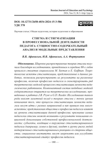Афанасьев, В.В. Стигма и стигматизация в профессиональной деятельности педагога: сущностно-содержательный анализ и модельные представления / В.В. Афанасьев, И.В. Афанасьев, А.А. Фортунатов // Russian Journal of Education and Psychology. – 2024. – № 3. — С. 180-198. — Только в электронном виде. — <URL:http://elib.fa.ru/art2024/bv3284.pdf>.
