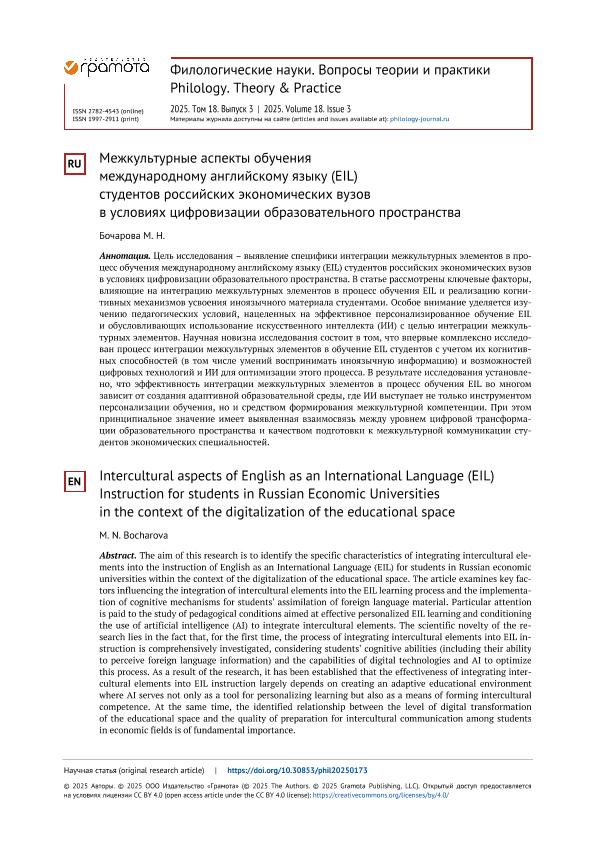в условиях цифровизации образовательного пространства // Филологические науки. Вопросы теории и практики. – 2025. – № 3. — С. 1201-1210. — Только в электронном виде. — <URL:http://elib.fa.ru/art2025/bv399.pdf>.