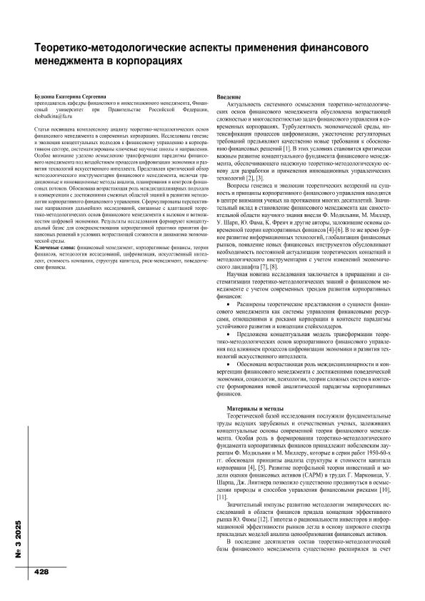 Будкина, Е.С. Теоретико-методологические аспекты применения финансового менеджмента в корпорациях // Экономика строительства. – 2025. – № 3. — С. 428-432. — Только в электронном виде. — <URL:http://elib.fa.ru/art2025/bv404.pdf>.
