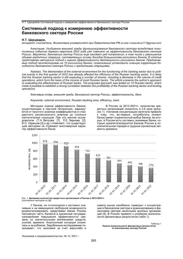 банковского сектора России // Экономика и предпринимательство. – 2021. – № 12.-С.265-267. — Только в электронном виде. — <URL:http://elib.fa.ru/art2021/bv3604.pdf>.