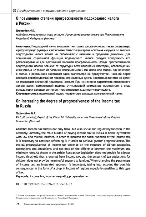 Цховребов М.П. О повышении степени прогрессивности подоходного налога в России // Менеджмент и бизнес-администрирование. – 2021. – № 3.-С.74-82. — Только в электронном виде. — <URL:http://elib.fa.ru/art2021/bv3605.pdf>.
