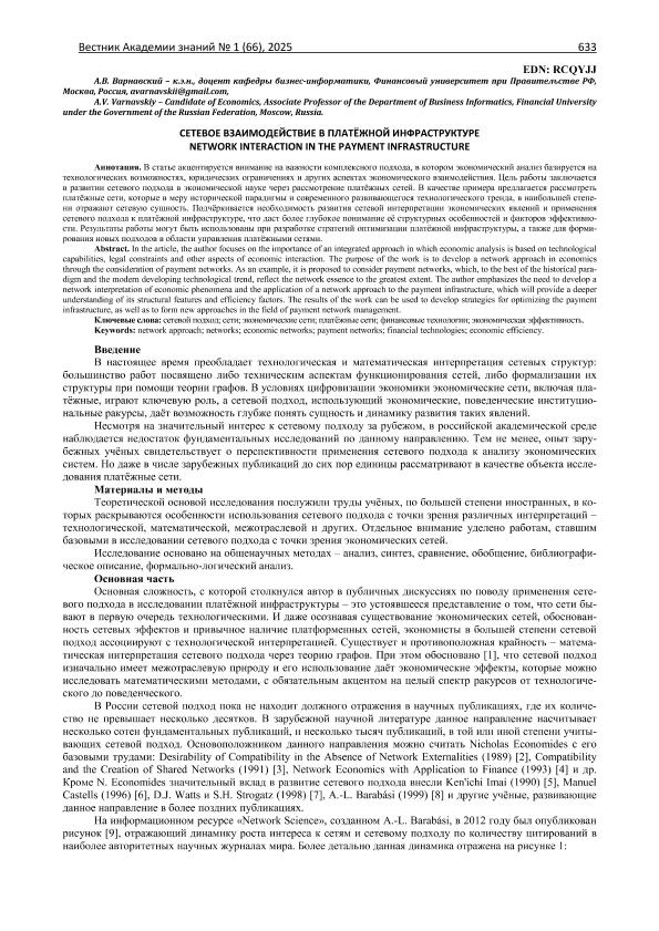 Варнавский, А.В. Сетевое взаимодействие в платежной инфраструктуре // Вестник Академии знаний. – 2025. – № 1. — С. 633-635. — Только в электронном виде. — <URL:http://elib.fa.ru/art2025/bv537.pdf>.