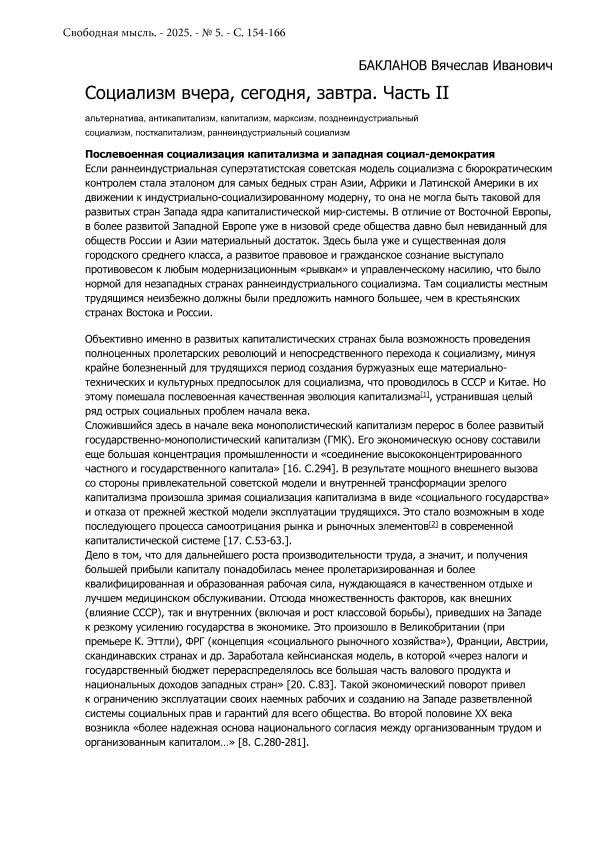 Бакланов, В.И. Социализм вчера, сегодня, завтра. Часть II // Свободная мысль. – 2025. – № 5. — С. 154-166. — Только в электронном виде. — <URL:http://elib.fa.ru/art2025/bv1899.pdf>.