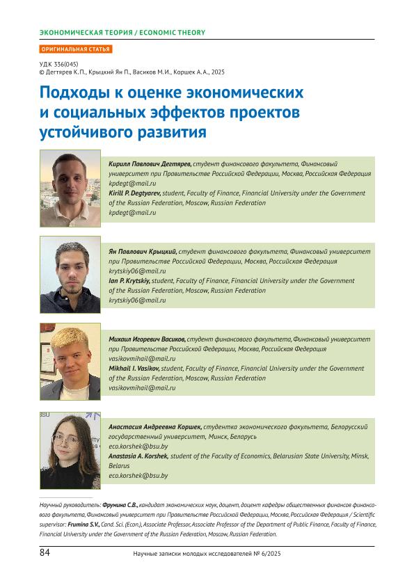 Подходы к оценке экономических и социальных эффектов проектов устойчивого развития / К.П. Дегтярев, Ян П. Крыцкий, М.И. Васиков, А.А. Коршек // Научные записки молодых исследователей. – 2025. – № 6. — С. 84-90 — <URL:http://elib.fa.ru/art2025/bv1903.pdf>.