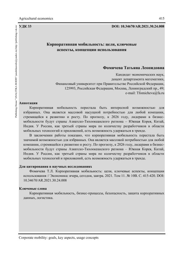 Фомичева Т.Л. Корпоративная мобильность: цели, ключевые аспекты,