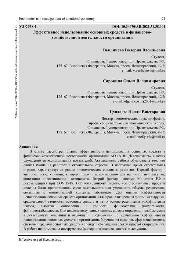 Векличева В.В. Эффективное использование основных средств в финансово-хозяйственной деятельности организации / Векличева В.В., Сорокина О.В., Цхададзе Н.В. // Экономика: вчера, сегодня, завтра. – 2021. – № 11А.-С.21-29. — Только в электронном виде. — <URL:http://elib.fa.ru/art2021/bv3555.pdf>.