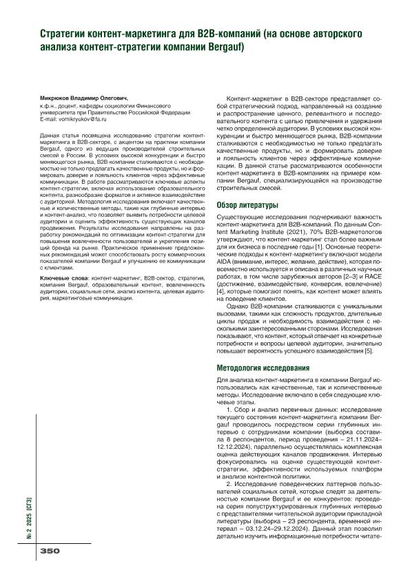 Микрюков, В.О. Стратегии контент-маркетинга для B2B-компаний (на основе авторского анализа контент-стратегии