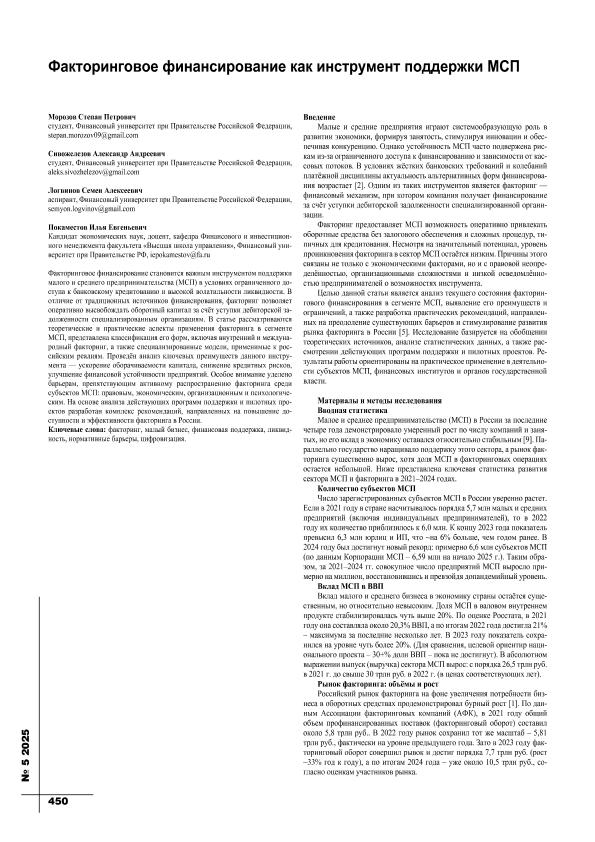 Факторинговое финансирование как инструмент / С.П. Морозов, А.А. Сивожелезов, С.А. Логвинов, И.Е. Покаместов // Экономика строительства. – 2025. – № 5. — С. 450-453. — Только в электронном виде. — <URL:http://elib.fa.ru/art2025/bv1027.pdf>.