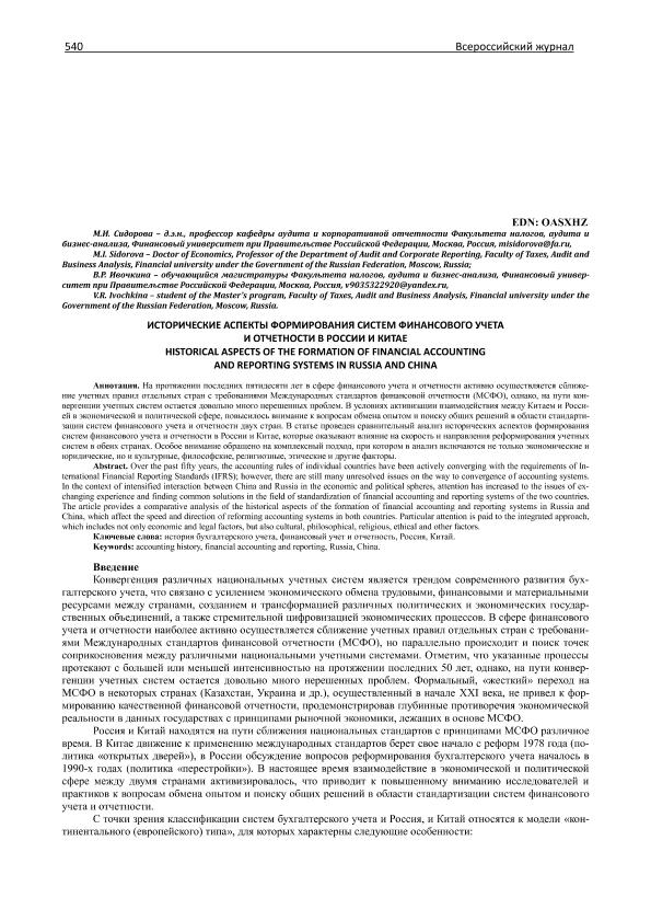 Сидорова, М.И. Исторические аспекты формирования систем финансового учета и отчетности в России и Китае / М.И. Сидорова, В.Р. Ивочкина // Вестник Академии знаний. – 2025. – № 2. — С. 540-546. — Только в электронном виде. — <URL:http://elib.fa.ru/art2025/bv1582.pdf>.
