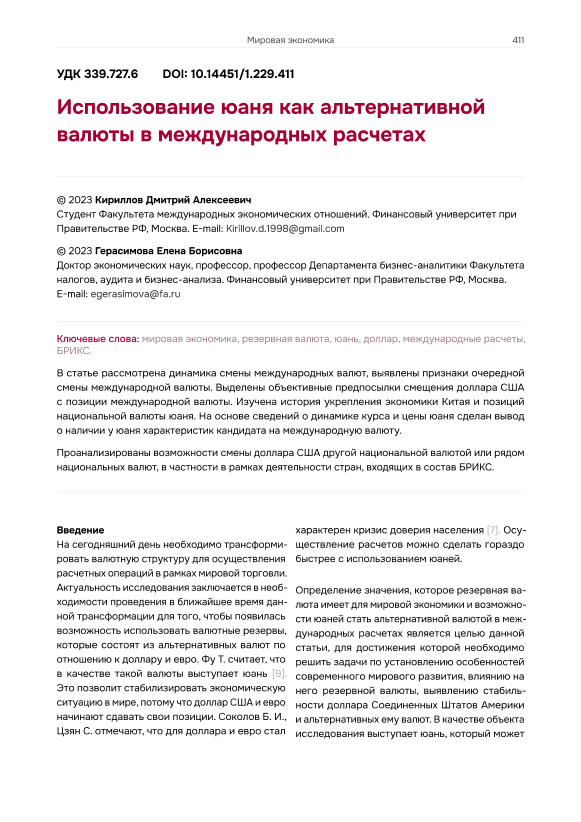 РФ; мировая экономика; валюта; иностранная валюта; международные расчеты; юань; доллар; финансовые технологии; БРИКС; производные финансовые инструменты; внешнеэкономическая деятельность; студенты ФА; бакалавры ФА; полный текст