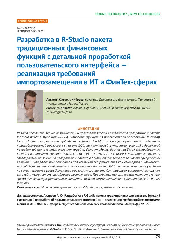 Андреев, А.Ю. Разработка в R-Studio пакета традиционных финансовых функций с детальной проработкой