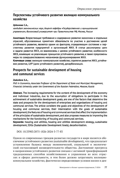Зуденкова, С.А. Перспективы устойчивого развития жилищно-коммунального хозяйства // Менеджмент и бизнес-администрирование. – 2024. – № 3. — С. 77-83. — Только в электронном виде. — <URL:http://elib.fa.ru/art2024/bv4019.pdf>.