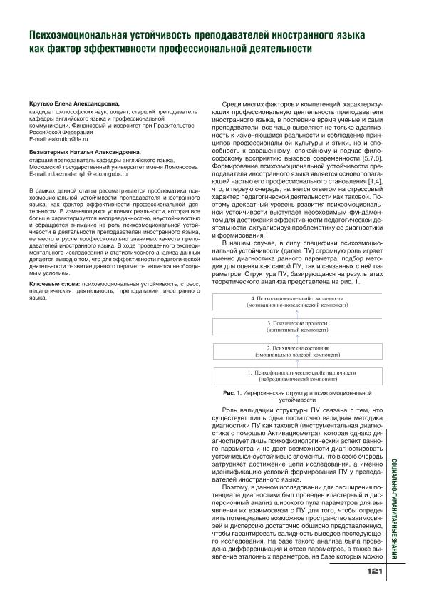 Крутько, Е.А. Психоэмоциональная устойчивость преподавателей иностранного языка как фактор эффективности профессиональной деятельности / Е.А. Крутько, Н.А. Безматерных // Социально-гуманитарные знания. – 2025. – № 3. — С. 121-126. — Только в электронном виде. — <URL:http://elib.fa.ru/art2025/bv2554.pdf>.