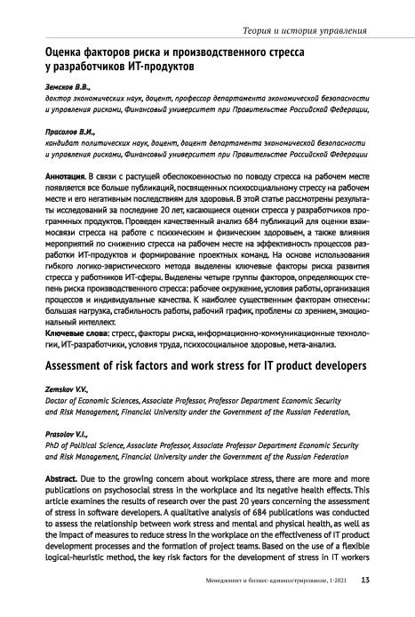 у разработчиков ИТ-продуктов / Земсков В.В., Прасолов В.И. // Менеджмент и бизнес-администрирование. – 2021. – № 1.-С.13-24. — Только в электронном виде. — <URL:http://elib.fa.ru/art2021/bv3522.pdf>.