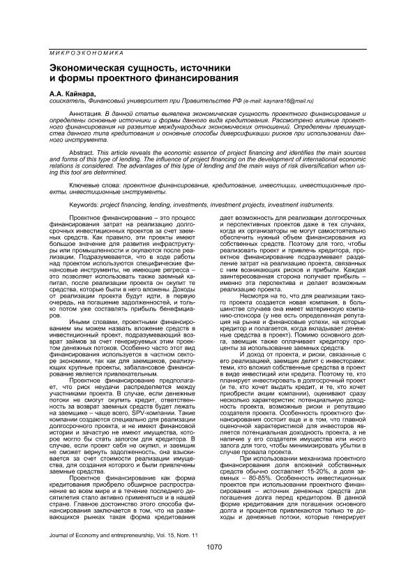 Кайнара А.А. Экономическая сущность, источники и формы проектного финансирования // Экономика и предпринимательство. – 2021. – № 11.-С.1070-1074. — Только в электронном виде. — <URL:http://elib.fa.ru/art2021/bv3530.pdf>.