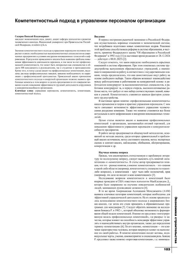 Сидоров, Н.В. Компетентностный подход в управлении персоналом организации // Экономика строительства. – 2025. – № 2. — С. 103-106. — Только в электронном виде. — <URL:http://elib.fa.ru/art2025/bv756.pdf>.