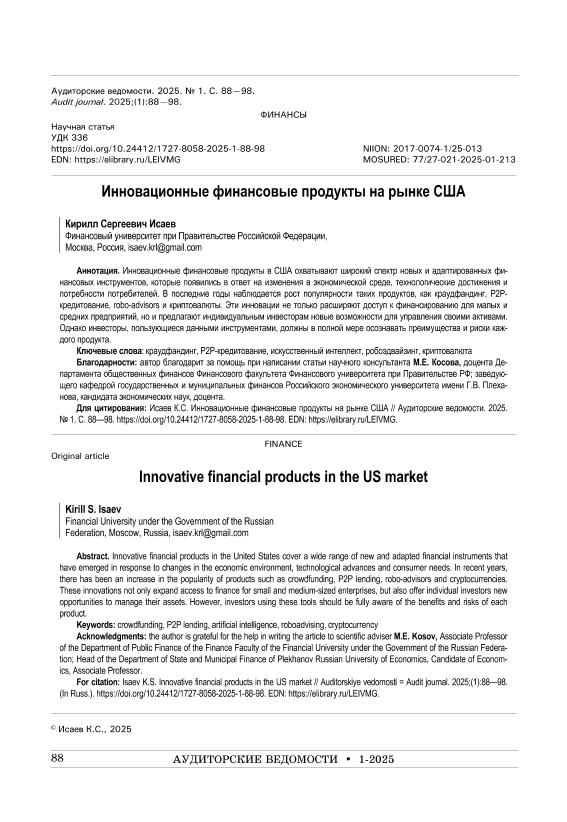 Исаев, К.С. Инновационные финансовые продукты на рынке США // Аудиторские ведомости. – 2025. – № 1. — С. 88-98. — Только в электронном виде. — <URL:http://elib.fa.ru/art2025/bv609.pdf>.