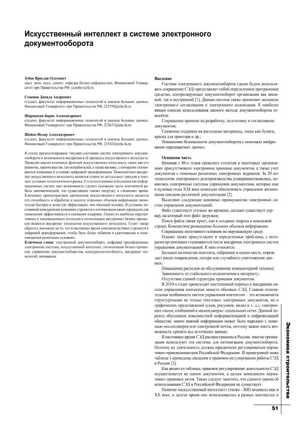 Искусственный интеллект в системе электронного документооборота / Я.О. Зубов, Д.А. Семенов, Б.А. Шарашкин, Ф.А. Шейко // Экономика строительства. – 2025. – № 2. — С. 51-54. — Только в электронном виде. — <URL:http://elib.fa.ru/art2025/bv613.pdf>.