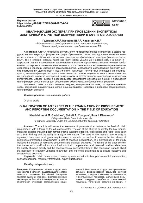 Гаджиев, Х.М. Квалификация эксперта при проведении экспертизы закупочной и отчетной документации в сфере образования / Х.М. Гаджиев, Ш.А. Юсуфов, И.И. Хасанов // Гуманитарные, социально-экономические и общественные науки. – 2025. – № 4. — С.205-212. — Только в электронном виде. — <URL:http://elib.fa.ru/art2025/bv433.pdf>.