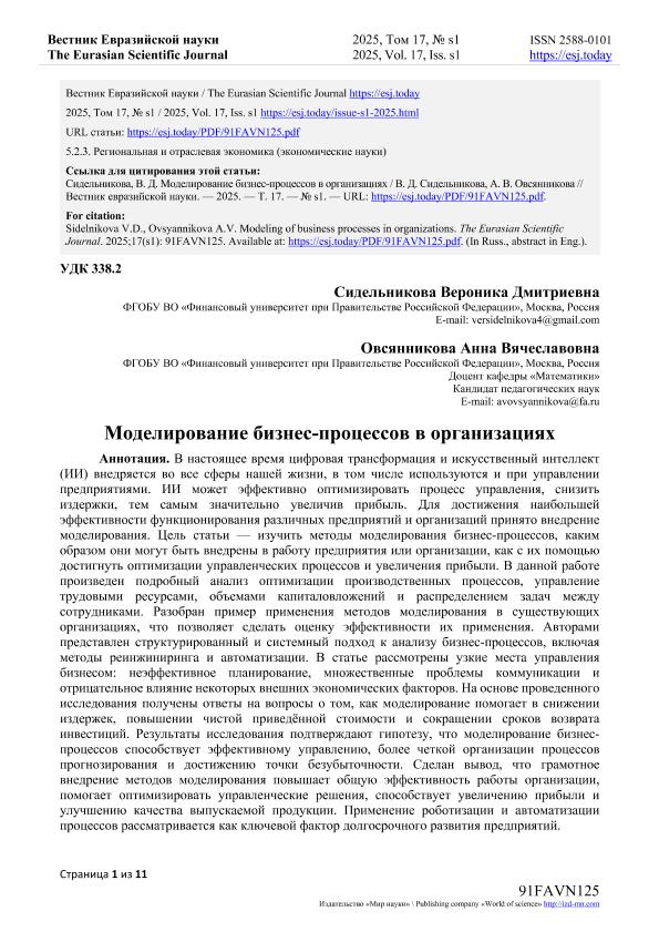 Сидельникова, В.Д. Моделирование бизнес-процессов в организациях / В.Д. Сидельникова, А.В. Овсянникова. — Текст: электронный // Вестник Евразийской науки. – 2025. – № s1. — URL: https://esj.today/PDF/91FAVN125.pdf (дата обращения: 08.10.2025) — <URL:http://elib.fa.ru/art2025/bv1576.pdf>.