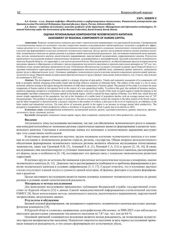 Асеева, А.А. Оценка региональных компонентов человеческого капитала // Вестник Академии знаний. – 2024. – № 5. — С. 62-66. — Только в электронном виде. — <URL:http://elib.fa.ru/art2024/bv3921.pdf>.