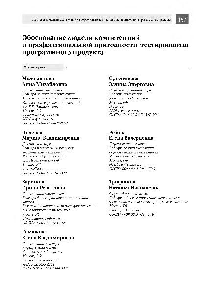 Обоснование модели компетенций и профессиональной пригодности тестировщика программного продукта / А.М. Молокостова, М.В. Полевая, И.Р. Зарипова [и др.] // Проблемы теории и практики управления. – 2024. – № 10. — С. 157-168. — Только в электронном виде. — <URL:http://elib.fa.ru/art2024/bv3755.pdf>.