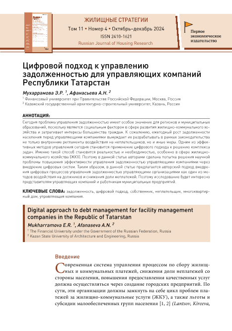 Мухаррамова, Э.Р. Цифровой подход к управлению задолженностью для управляющих компаний
