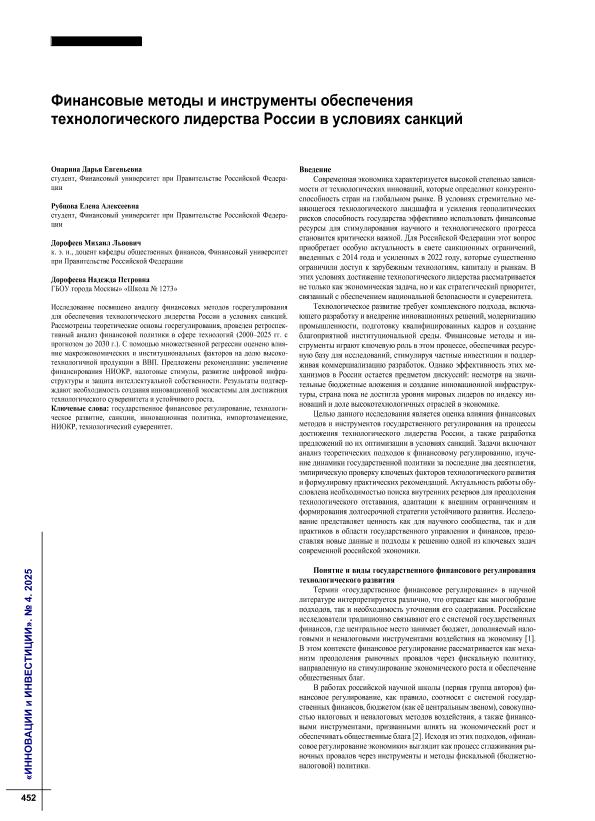 технологического лидерства России в условиях санкций / Д.Е. Опарина, Е.А. Рубцова, М.Л. Дорофеев, Н.П. Дорофеева // Инновации и инвестиции. – 2025. – № 4. — С. 452-456. — Только в электронном виде. — <URL:http://elib.fa.ru/art2025/bv1677.pdf>.