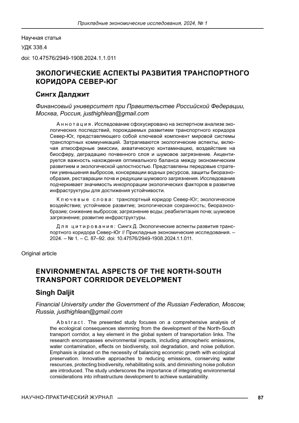 Сингх Далджит. Экологические аспекты развития транспортного коридора Север-Юг // Прикладные экономические исследования. – 2024. – № 1. — С. 87-92. — Только в электронном виде. — <URL:http://elib.fa.ru/art2024/bv3911.pdf>.