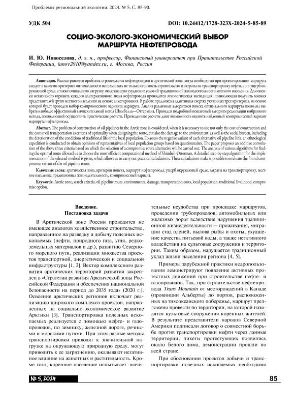 Новоселова, И.Ю. Социо-эколого-экономический выбор маршрута нефтепровода // Проблемы региональной экологии. – 2024. – № 5. — С. 85-90. — Только в электронном виде. — <URL:http://elib.fa.ru/art2024/bv3907.pdf>.
