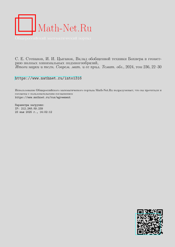 Степанов, С.Е. Вклад обобщенной техники Бохнера в геометрию полных минимальных подмногообразий / С.Е. Степанов, И.И. Цыганок // Итоги науки и техники. Современная математика и ее приложения. Тематические обзоры. – 2024. – Т. 236. — С. 22-30. — Только в электронном виде. — <URL:http://elib.fa.ru/art2024/bv3672.pdf>.