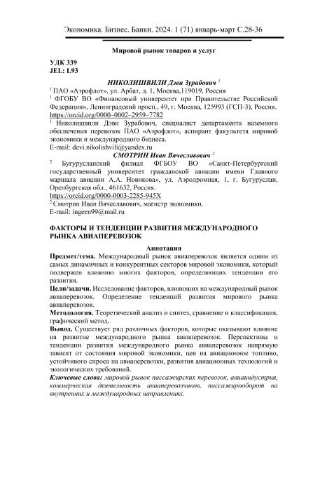 Николишвили, Д.З. Факторы и тенденции развития международного рынка авиаперевозок / Д.З. Николишвили, И.В. Смотрин // Экономика. Бизнес. Банки. – 2024. – № 1. — С. 28-36. — Только в электронном виде. — <URL:http://elib.fa.ru/art2024/bv3959.pdf>.
