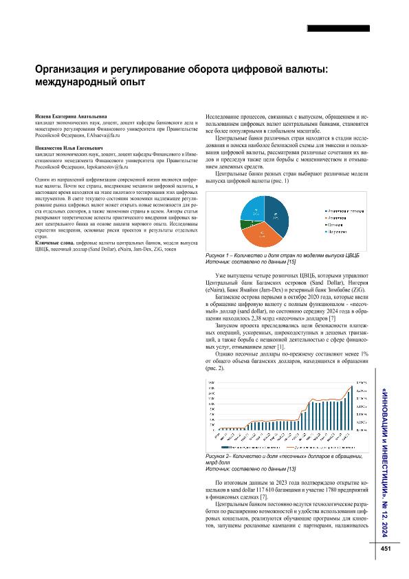 Исаева, Е.А. Организация и регулирование оборота цифровой валюты: международный опыт / Е.А. Исаева, И.Е. Покаместов // Инновации и инвестиции. – 2024. – № 12. — С. 451-455. — Только в электронном виде. — <URL:http://elib.fa.ru/art2024/bv3805.pdf>.