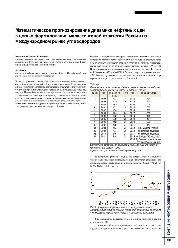 Веретехина, С.В. Математическое прогнозирование динамики нефтяных цен с целью формирования маркетинговой стратегии России на