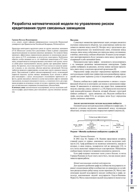 Гринева, Н.В. Разработка математической модели по управлению риском кредитования групп связанных заемщиков // Инновации и инвестиции. – 2024. – № 11. — С. 505-510. — Только в электронном виде. — <URL:http://elib.fa.ru/art2024/bv3795.pdf>.