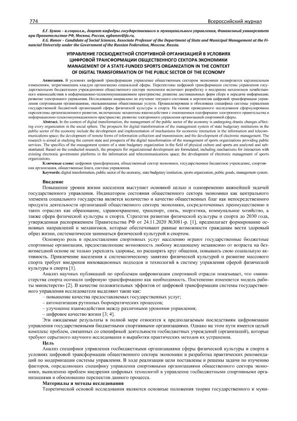 Бунов, Е.Г. Управление госбюджетной спортивной организацией в условиях цифровой трансформации общественного сектора экономики // Вестник Академии знаний. – 2025. – № 3. — С. 774-778. — Только в электронном виде. — <URL:http://elib.fa.ru/art2025/bv577.pdf>.