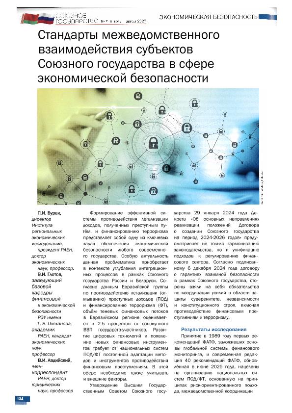 Бурак, П.И. Стандарты межведомственного взаимодействия субъектов Союзного государства в сфере экономической безопасности / П.И. Бурак, В.И. Глотов, В.И. Авдийский // Союзное государство. – 2025. – № 7/8. — С. 134-143. — Только в электронном виде. — <URL:http://elib.fa.ru/art2025/bv578.pdf>.