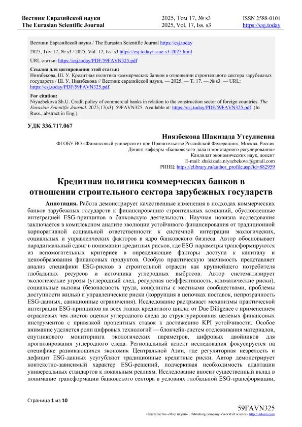 Ниязбекова, Ш.У. Кредитная политика коммерческих банков в отношении строительного сектора зарубежных государств. — Текст: электронный // Вестник Евразийской науки. – 2025. – № s3. — URL: https://esj.today/PDF/59FAVN325.pdf (дата обращения: 12.12.2025) — <URL:http://elib.fa.ru/art2025/bv1273.pdf>.