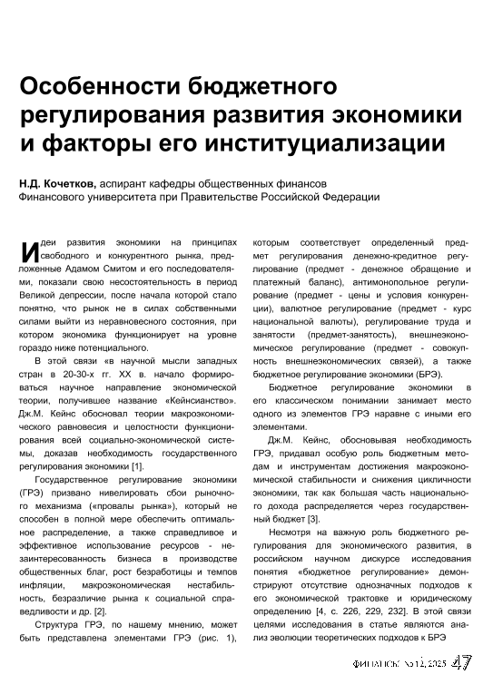 Кочетков, Н.Д. Особенности бюджетного регулирования развития экономики и факторы его институциализации // Финансы. – 2025. – № 12. — С. 47-53 — <URL:http://elib.fa.ru/art2025/bv1376.pdf>.