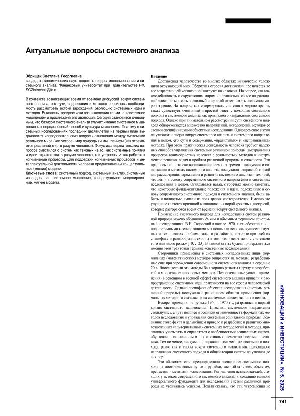 Збрищак, С.Г. Актуальные вопросы системного анализа // Инновации и инвестиции. – 2025. – № 5. — С. 741-746. — Только в электронном виде. — <URL:http://elib.fa.ru/art2025/bv1717.pdf>.