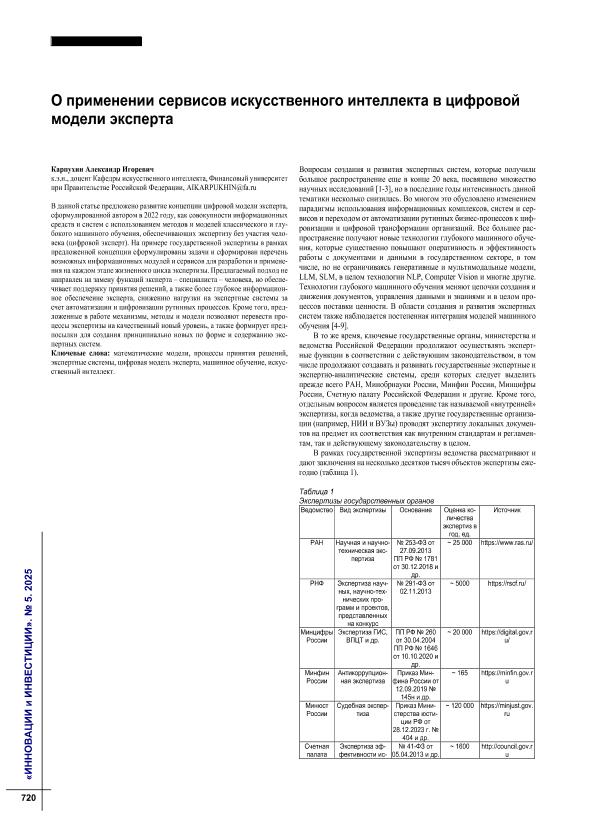Карпухин, А.И. О применении сервисов искусственного интеллекта в цифровой модели эксперта // Инновации и инвестиции. – 2025. – № 5. — С. 720-723. — Только в электронном виде. — <URL:http://elib.fa.ru/art2025/bv1721.pdf>.